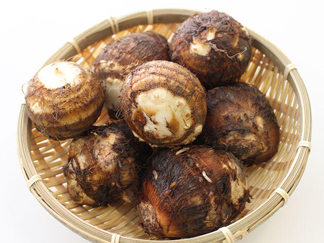 愛媛県が育成したオリジナル品種の里芋(愛媛農試V2号)です。とろけるような食感と濃厚な甘みが特徴です。白くきめ細やかな肉質、丸々として形が揃っていることから「伊予美人」と命名されました。